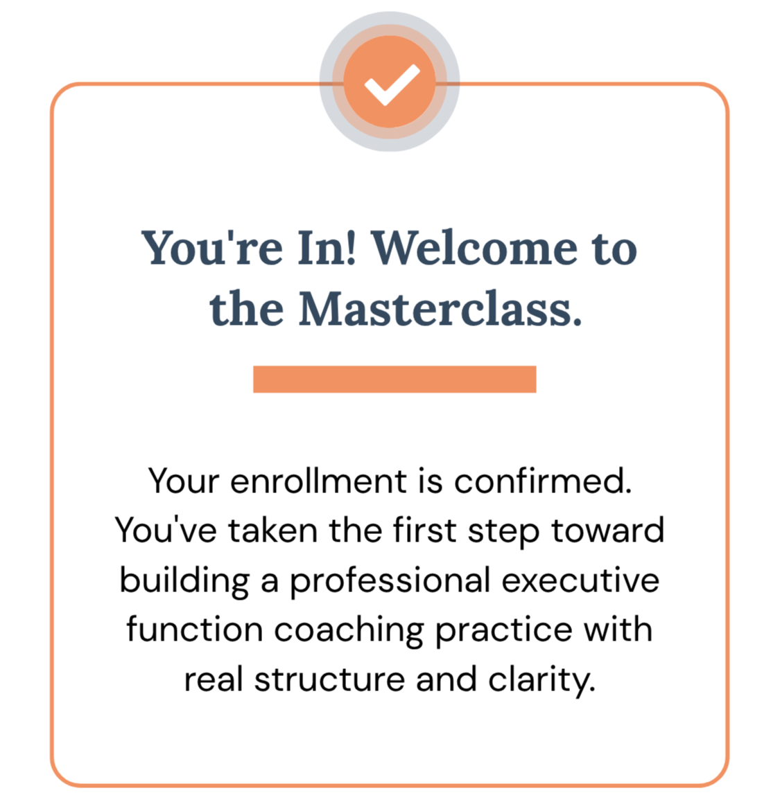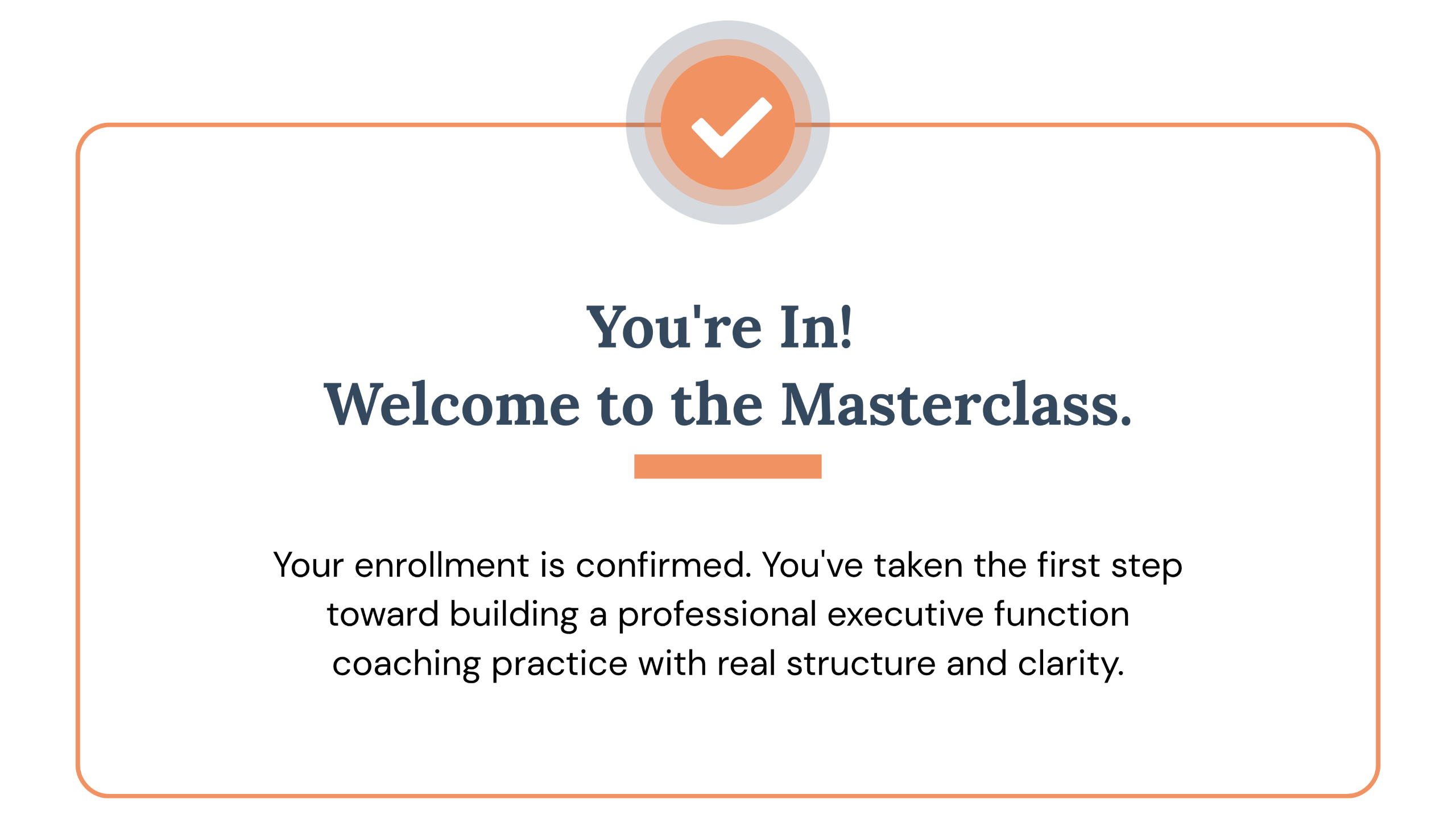 The masterclass gives you the administrative foundation. But if you're serious about building a complete, credible EF coaching practice with a proven method to teach—not just administrative setup—there's a next step.